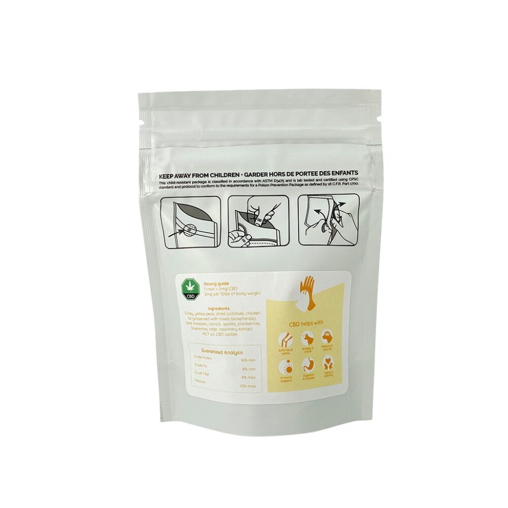 From their kitchens to the eager mouths of your beloved pets, Cannpanion offers limited-ingredient, CBD-infused Natural Turkey Treats! These delectable treats are 100% grain-free and enriched with 99.6% premium lab-tested pure CBD isolate. Each treat is baked low and slow to preserve the integrity of the medicinal ingredients. Cannpanion Treats are specially crafted to support your furry friends with conditions such as arthritis and joint pain, anxiety and stress, epilepsy and seizures, immune system support, digestion issues, and overall wellness as they age.