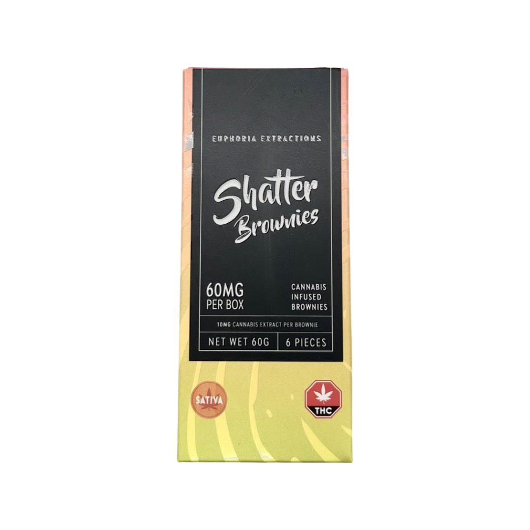 SaleEuphoria Extractions Shatter Brownies are freshly baked with delicious chocolate. Each of the 6 included brownie pieces is loaded 10mg of lab tested premium Full Spectrum Extract, leaving you with a sense of enlightenment and well-being.