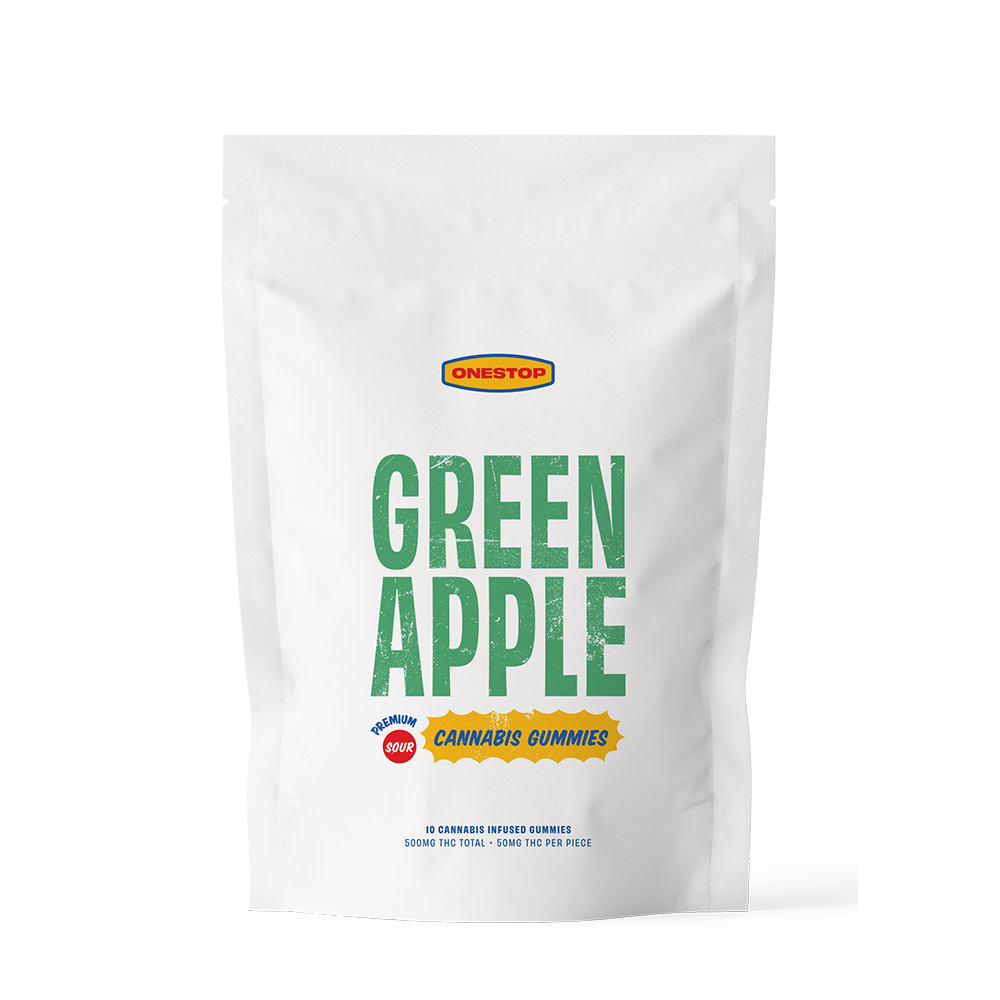 Skip the health and wellness premium attached to edible brands that flaunt their holistic healing properties and label their price tags accordingly, and get straight to having a blast with ONESTOP. Sour Green Apple ONESTOP THC gummies give you the best flavour and quality bang for your buck you could’ve asked for: with 500mg THC divided into 10 50mg THC gummies, there’s nothing holding you back from having a Bodega quality edible experience at a convenient ONESTOP price. All ONESTOP THC edibles are made using pure lab-tested delta-9 THC.