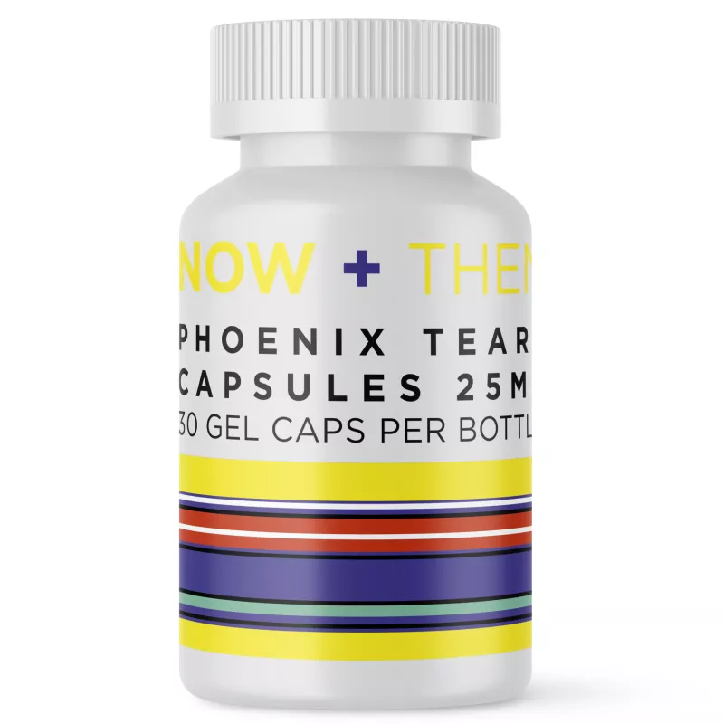 Relax and calm your mind with Now + Then’s fast-acting 25mg THC Phoenix Tears Capsules. Each gel cap delivers a moderate dose of pure decarboxylated THC, quickly absorbed into the bloodstream for full-body relaxation within 30 minutes. Experience muscle tension easing and a sense of mental clarity as racing thoughts slow down. The concentrated THC offers soothing effects without causing sedation, allowing you to stay productive while melting away stress. Now + Then’s Capsules provide discreet, effective THC relief, helping you unwind with precision and ease.