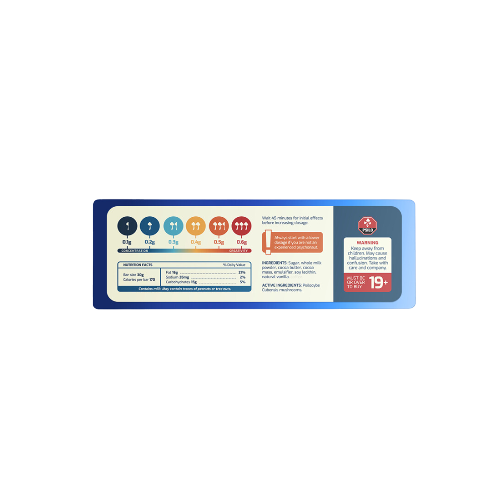 SaleIntroducing the new mushroom chocolate bars from Shroomies. These bars come with pre-measured doses to make your experience as simple as possible. Enjoy a single square (0.5g cubensis) for a gentle microdose, or indulge in the entire bar (3g cubensis) for a deep, otherworldly journey. Say goodbye to the earthy mushroom taste and enjoy a smooth experience from start to finish.